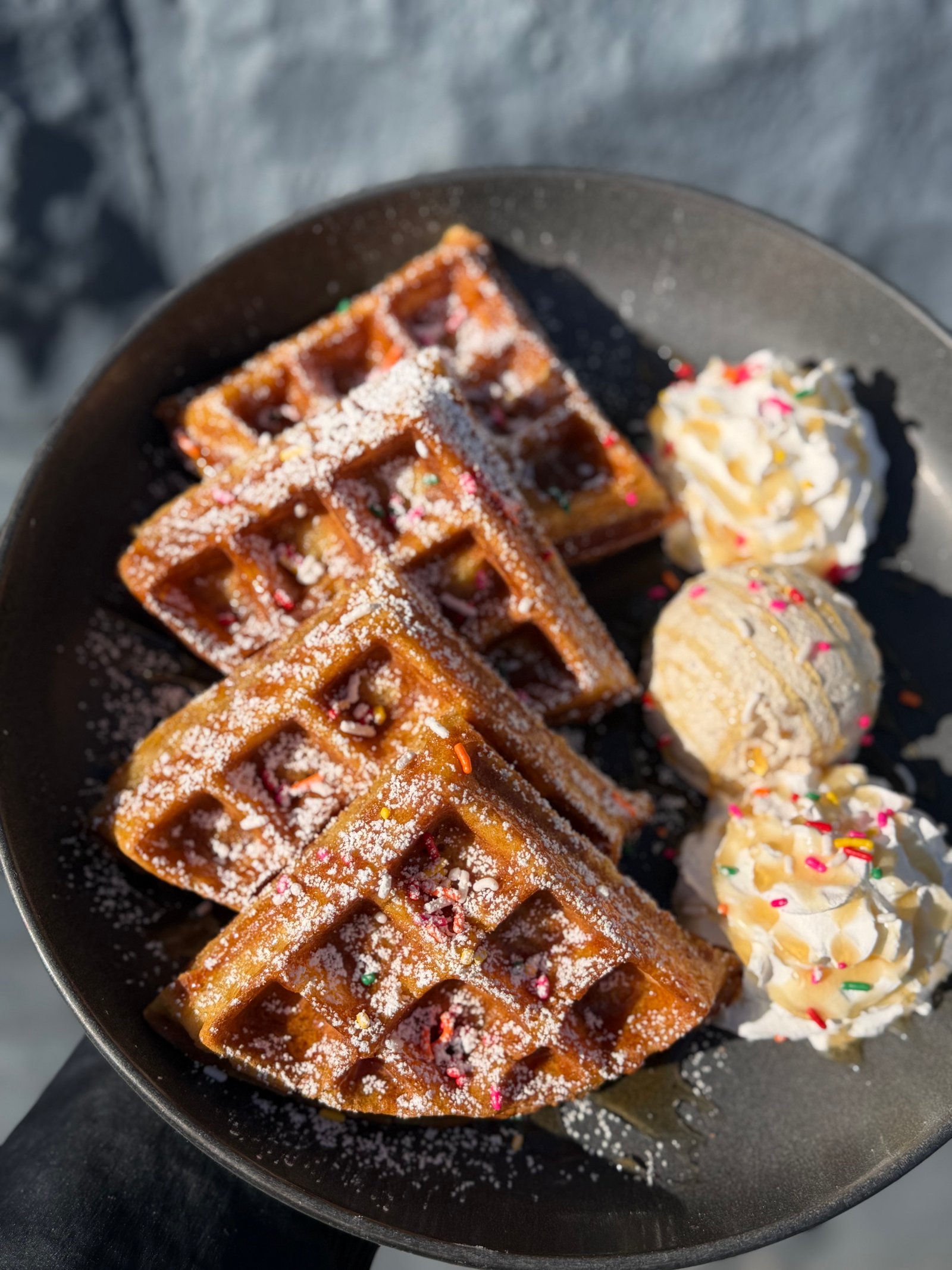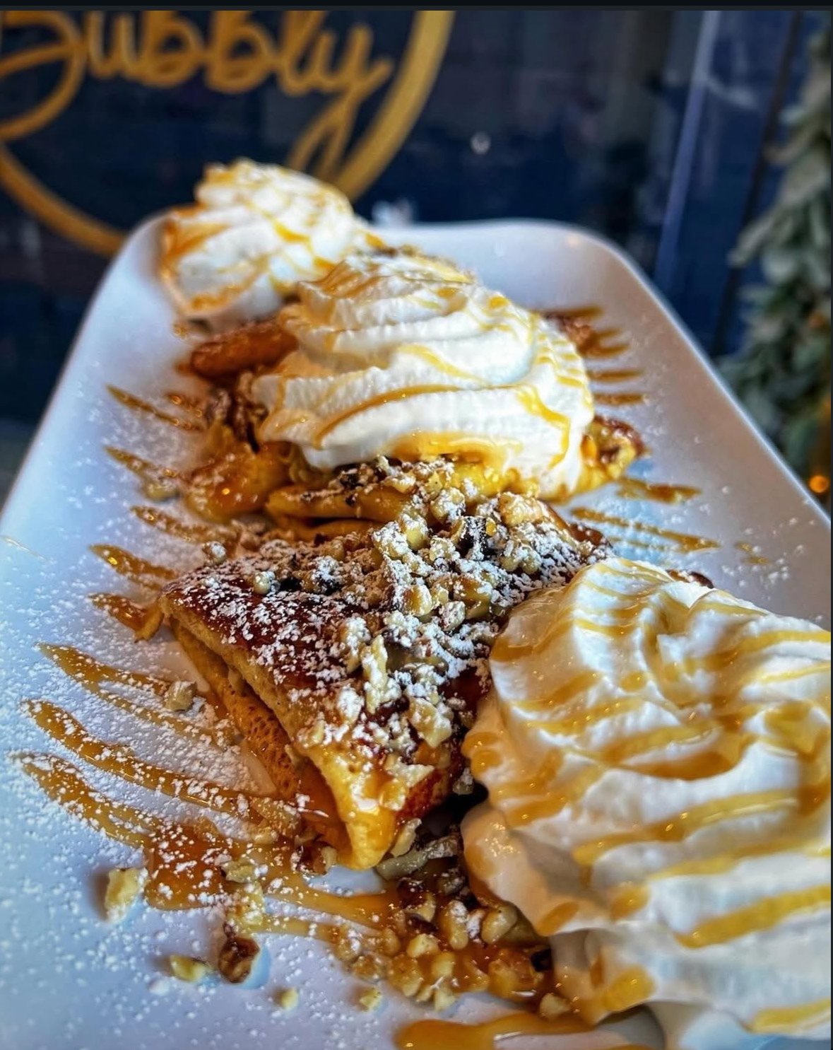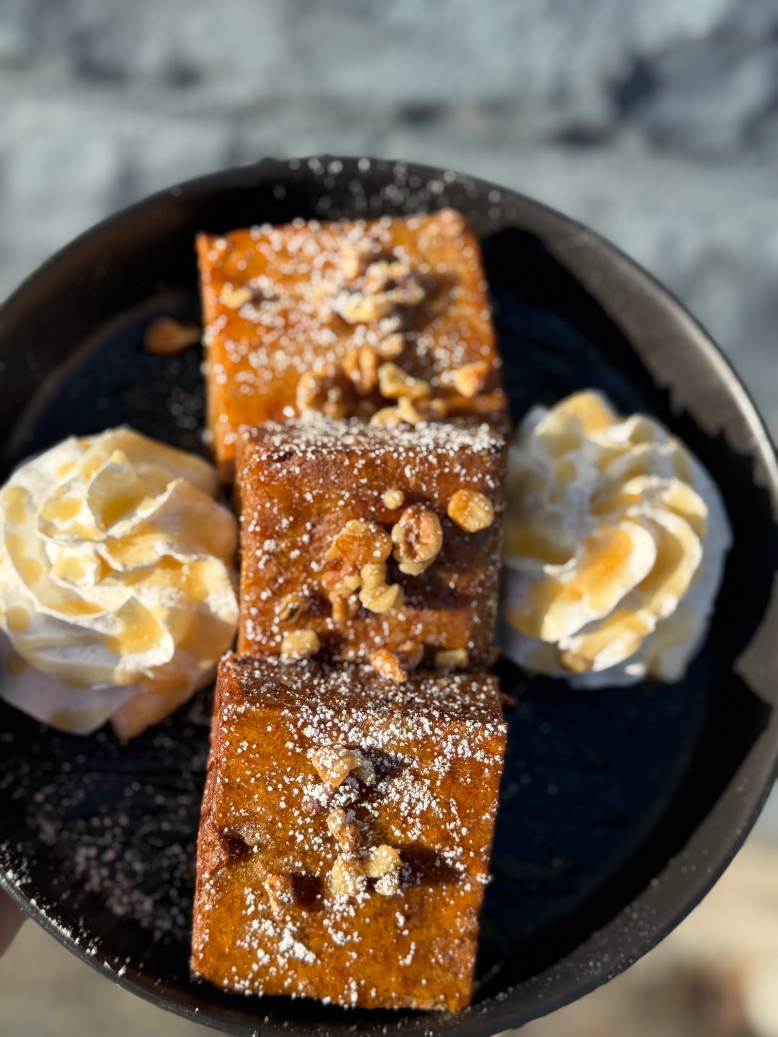 brioche bread, dolce de leche cinnamon sugar, whipped cream