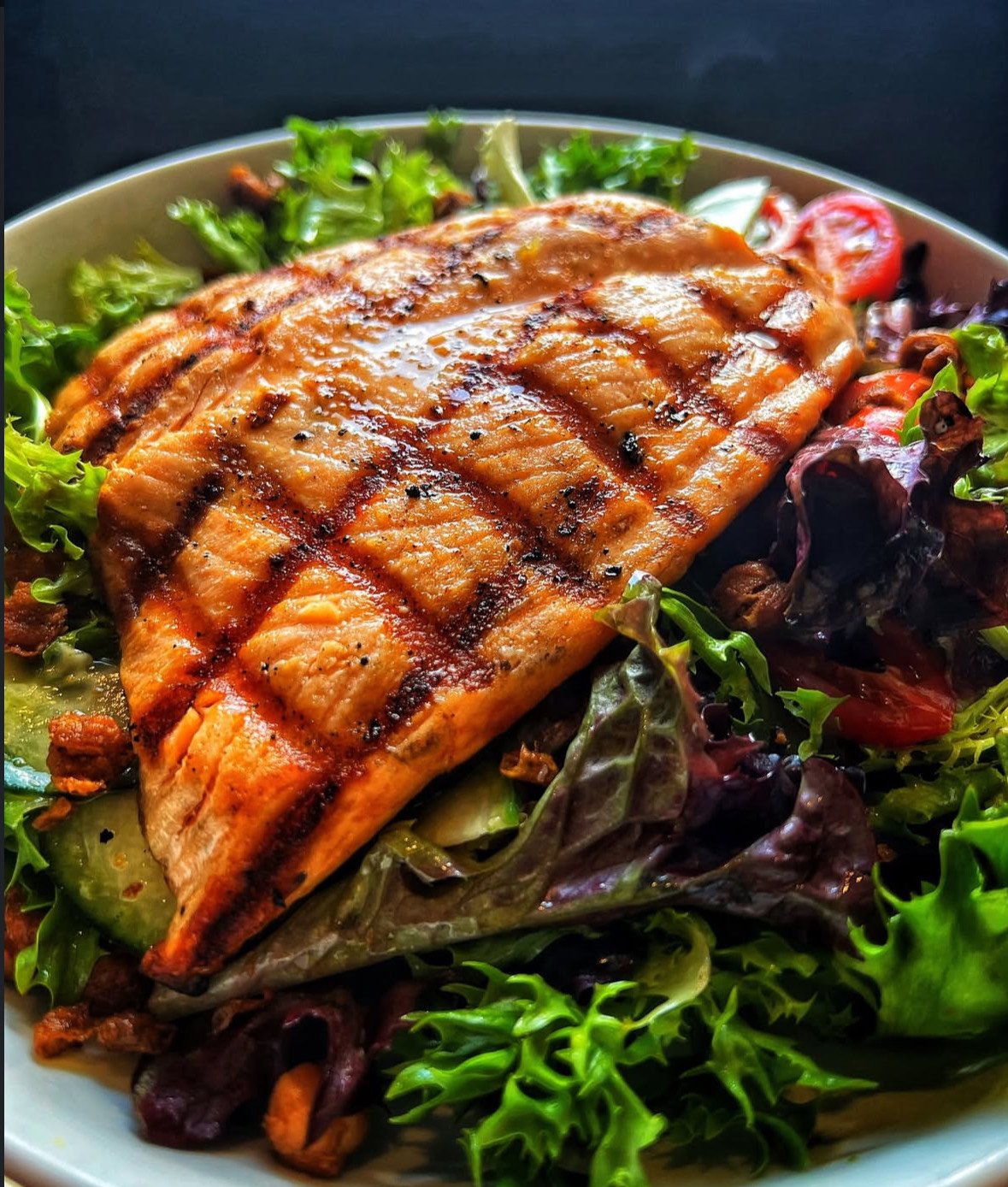 Add grilled or fried chicken (+$6), salmon (+8), or marinated steak (+8)