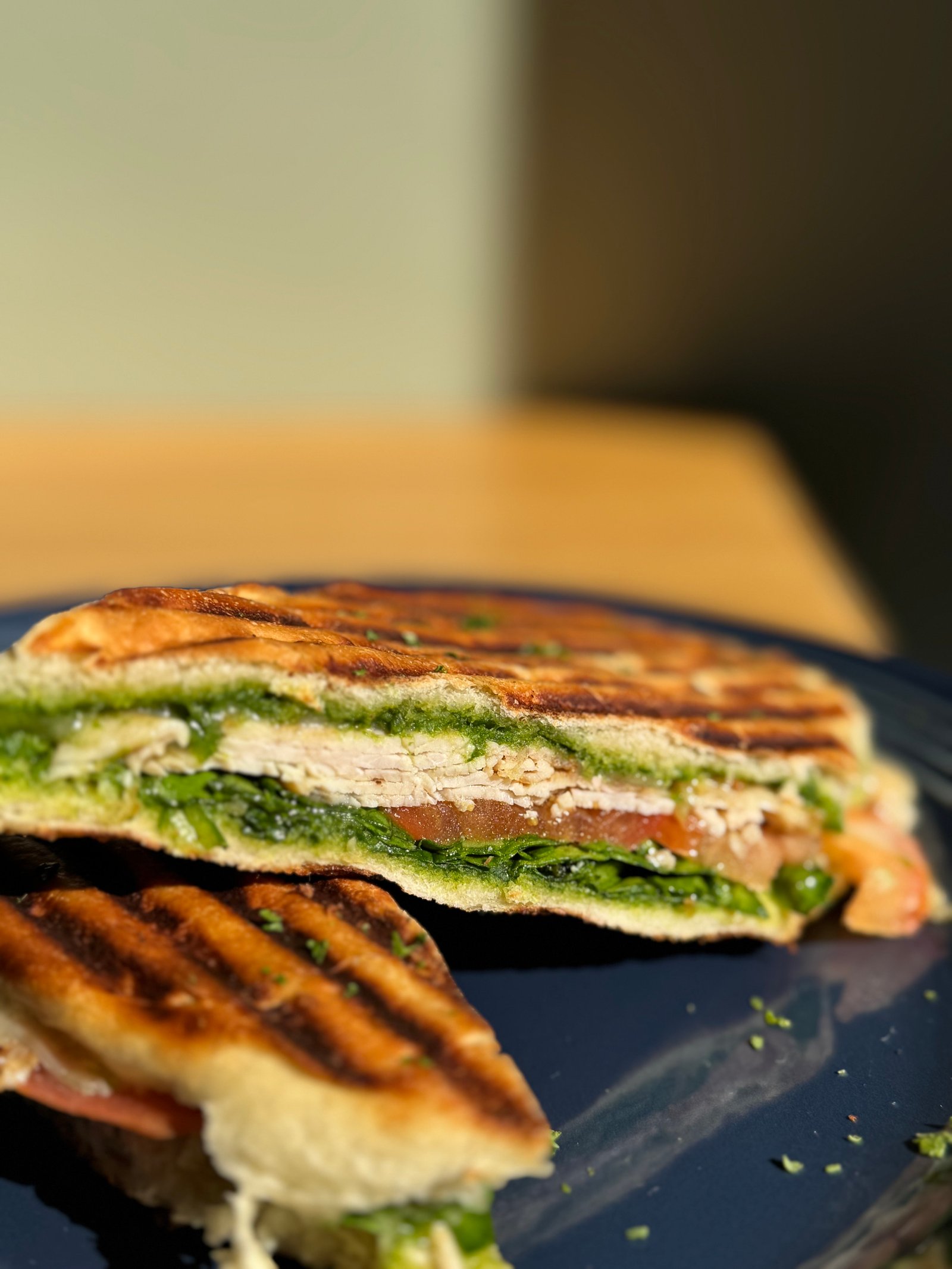turkey, kale, tomato, pesto, gruyere cheese, homemade panini bread